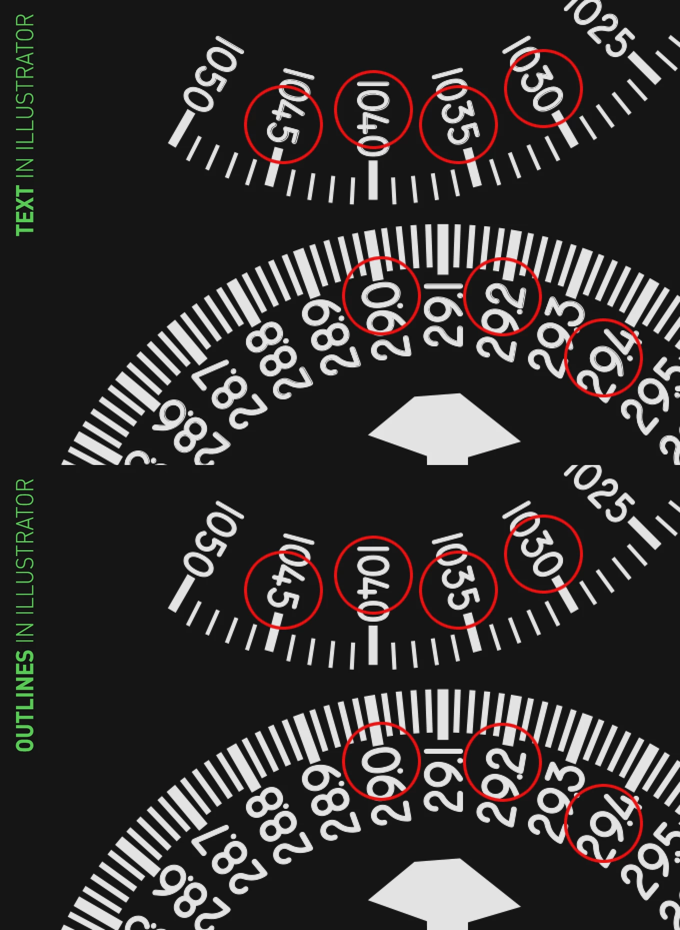 In the example above you see the same Photoshop file but once the object contains fonts (top) and once I converted the fonts to outlines in Illustrator (bottom).