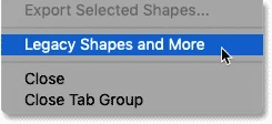 I'm trying to insert a text bubble in photoshop. Instead of what I normally see whan I click on the shapes selection, I now have folders with very specific types of shapes, not the normal text bubble, starburst. heart shape, lightening bolt, etc. that I've seen in the past. Anyone know how to change this back?