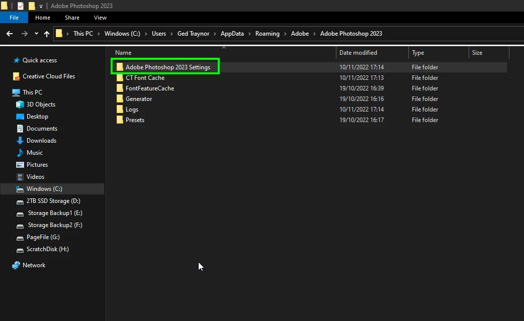 C:\Users\username\AppData\Roaming\Adobe\Adobe Photoshop 2023