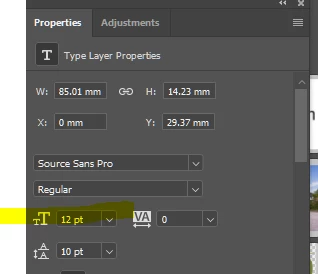 Text size in Photoshop is relative to the size of the document. Go to Image Size in Photoshop and make sure the print output, and resolution are what you need.