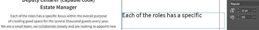 This is perfectly normal workflow for me and I've not had this difficulty with text sizes before.