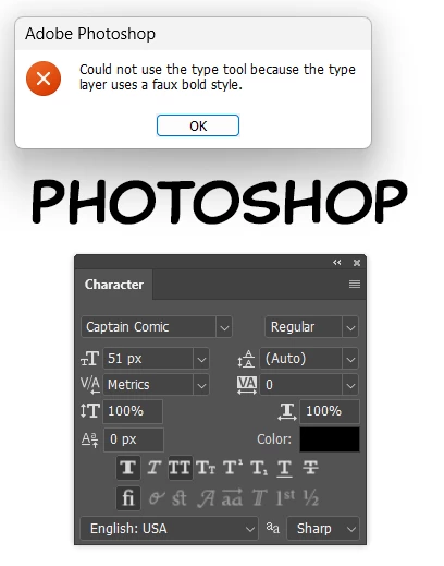 Trying to change text to shape as i always uses to. on every font, on the text layer when i click on text/change to shape, i get an error of"could not transform because the type layer uses a faux bold style"