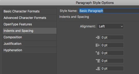 Please if you can go to the paragraph style panel (from the windows menu) and double click on the basic paragraph