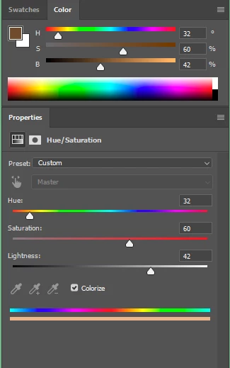 I am adding color to an infrared photo.  After making a selection with Color Range, I add a Hue/Saturation layer and check "colorize."  No trouble with blue sky and green foliage, but  shades of brown for a tree trunk?  Does not happen.  Thanks for help.