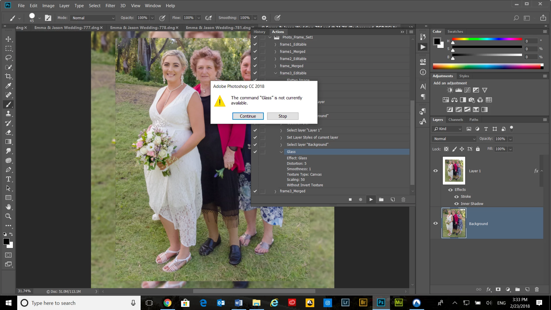 The command "Glass" is currently not available.