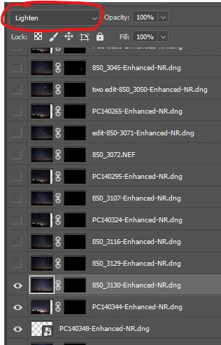 I created a mask to get the meteor, but when I applied the "lighten" on the mask, the meteor just disappeared. However, I did this successfully on the other layers , but failed on some layers with the same way, how do I solve this problem? Thank you!