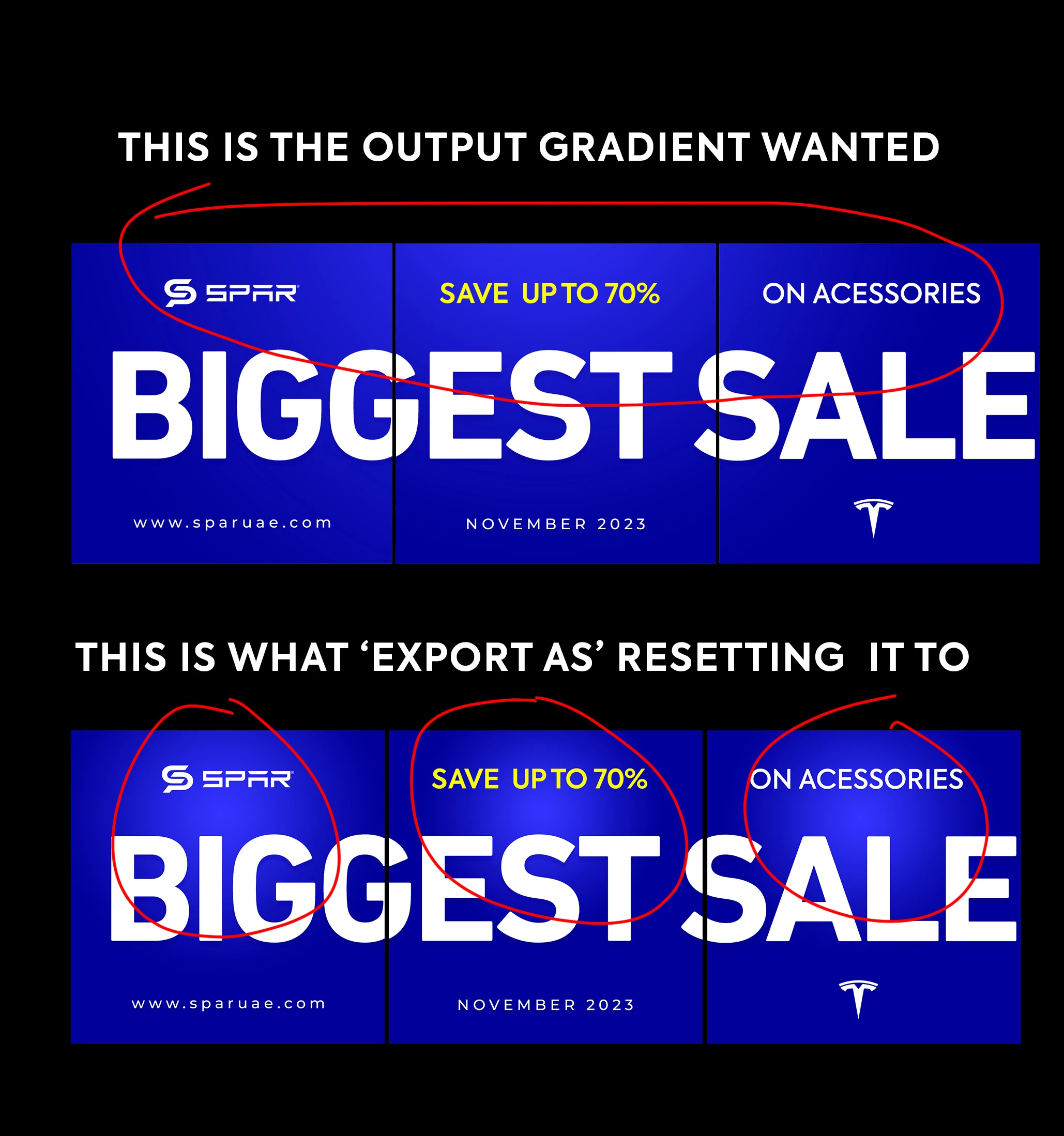 2. When working on artboards specifically creating grid layout for Instagram page. I applied a gradiend shade with a wide angle to keep it consistent across other artboards, but when I export the arboarts using Export as feature, all the gradient settings au0to resets to default. This is very strange.