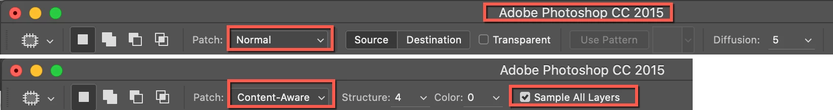 I still have PS CC 2015 on my laptop and have taken screenshots there as well. Sample all layers is only available with Content-Aware.