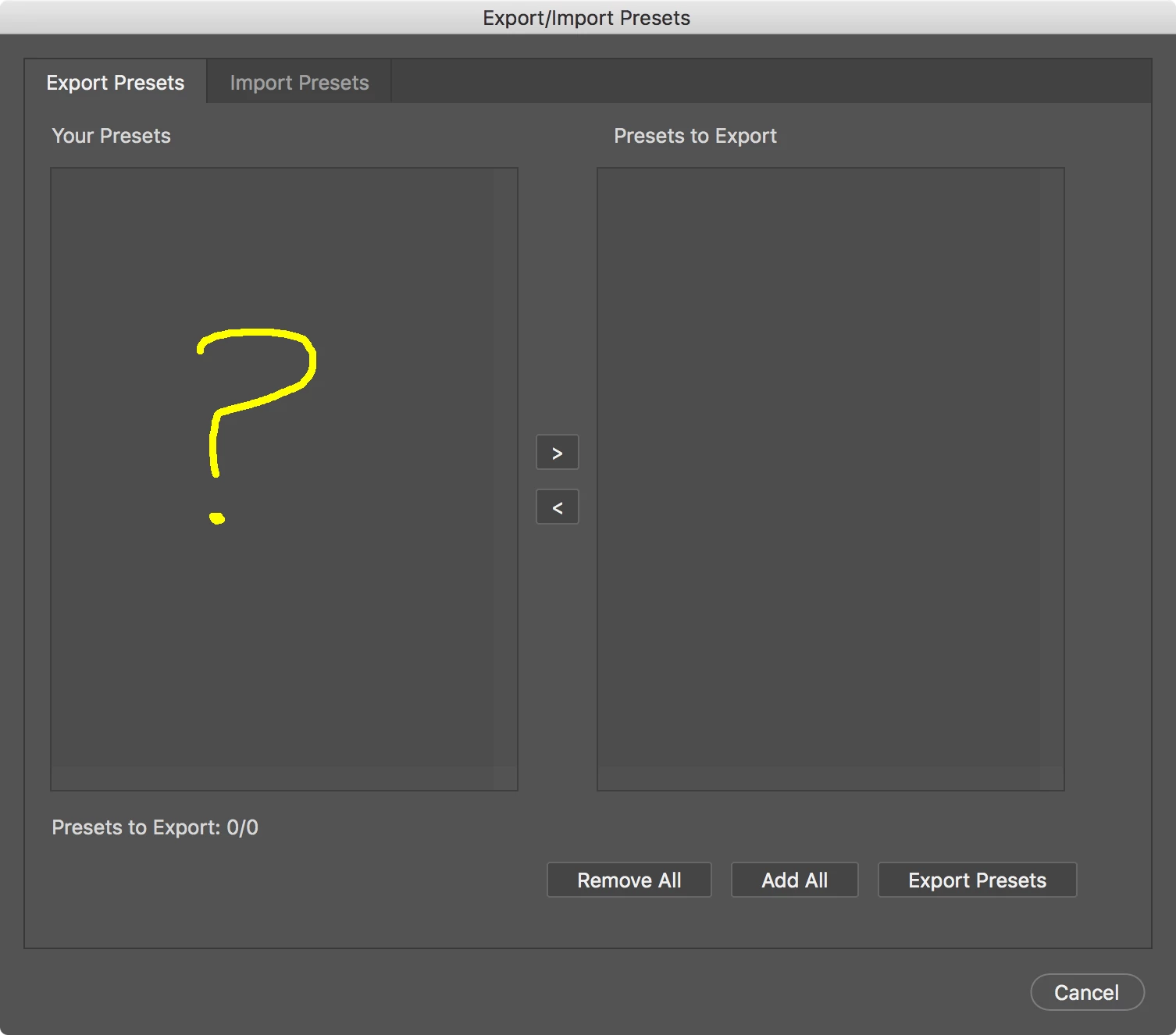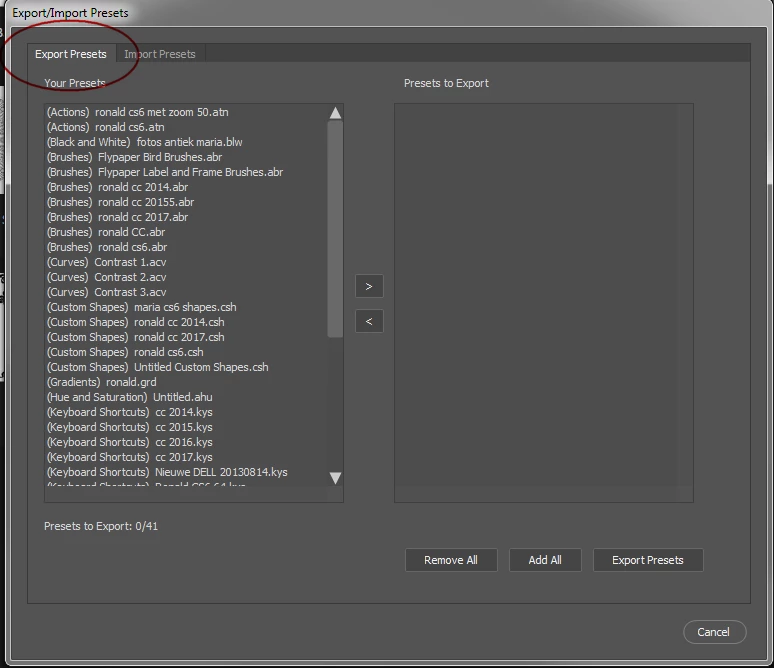 I like the idea of having one place for all presets (or I would if it worked), but then why have a redundant Save function in the keyboard-shortcuts dialog?