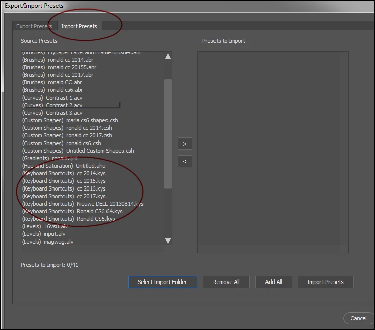 I checked the documentation and found that you can import & export presets, and supposedly keyboard shortcuts are amongst them. NOPE. In fact, this function doesn't appear to work at all: