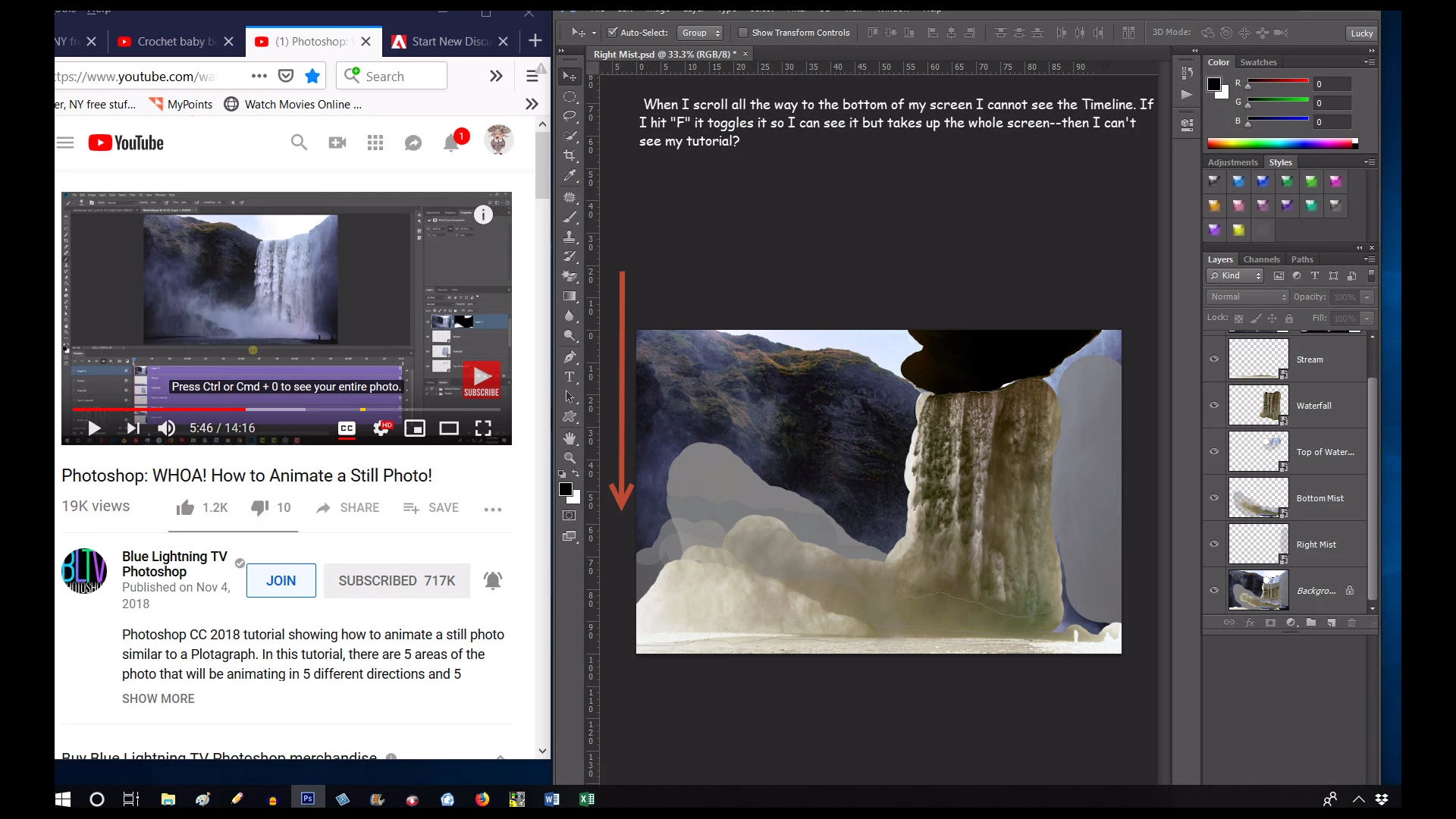 I like to keep my tutorial along side Photoshop. I can't see my Timeline unless I expand Photoshop, covers over tutorial. Is there a way I can drag my Timeline up in Photoshop without expanding the screen?