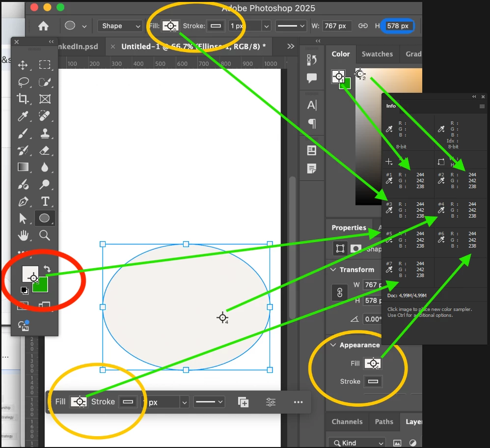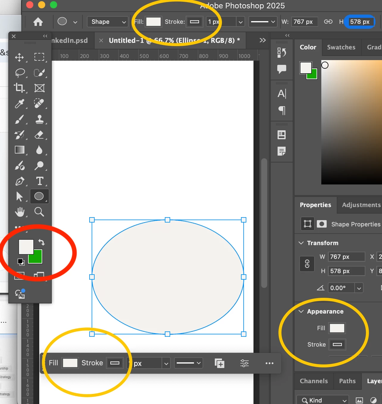 Any idea why the colors on the left, at the bottom of the tool bar, don't reflect the colors of the shape?