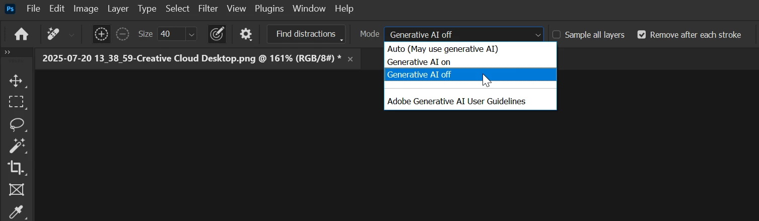 ik heb een probleem bij het gebruik in photoshop "tool verwijderen" .