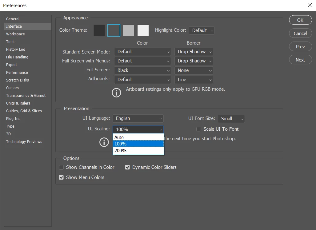 the toolbar in photoshop is too small to read. I cannot see the type it is so small.