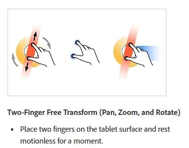 I have seen a number of posts where users have had the same question. Most responses point to GPU settings in your Preferences or enabling gestures period. These are not the answer to the issue. I use a Cintiq 24, touch enabled, and the two finger rotation features works perfect in every other drawing program, even Adobe's own Fresco. With Photoshop, there is an intentionally programmed 'hold' with the two-finger touch for rotation. See the documentation: