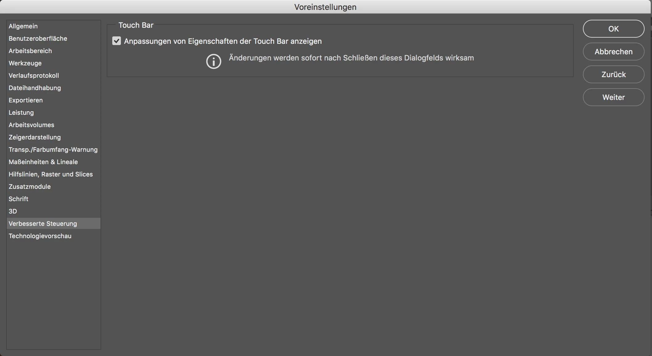ich möchte an meinem MacBookPro 2017 die Touchbar in Photoshop anpassen.