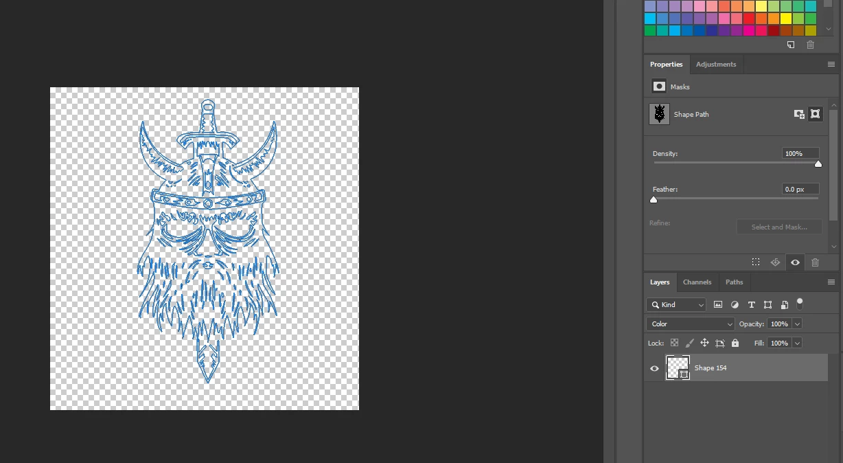 I am brand new to PS and recently traced an image of a viking. I traced it using the pen tool (I don't know in what mode I used the pen tool to trace it :/) and then took all of the shapes and merged them into one shape. From here I want to color in the image, however I do not know how to start going about that. When I try to click the paint brush the image just goes away. Also i think i traced in blue and would like to change the color of the traces to black. Any help would be much appreciated!!
