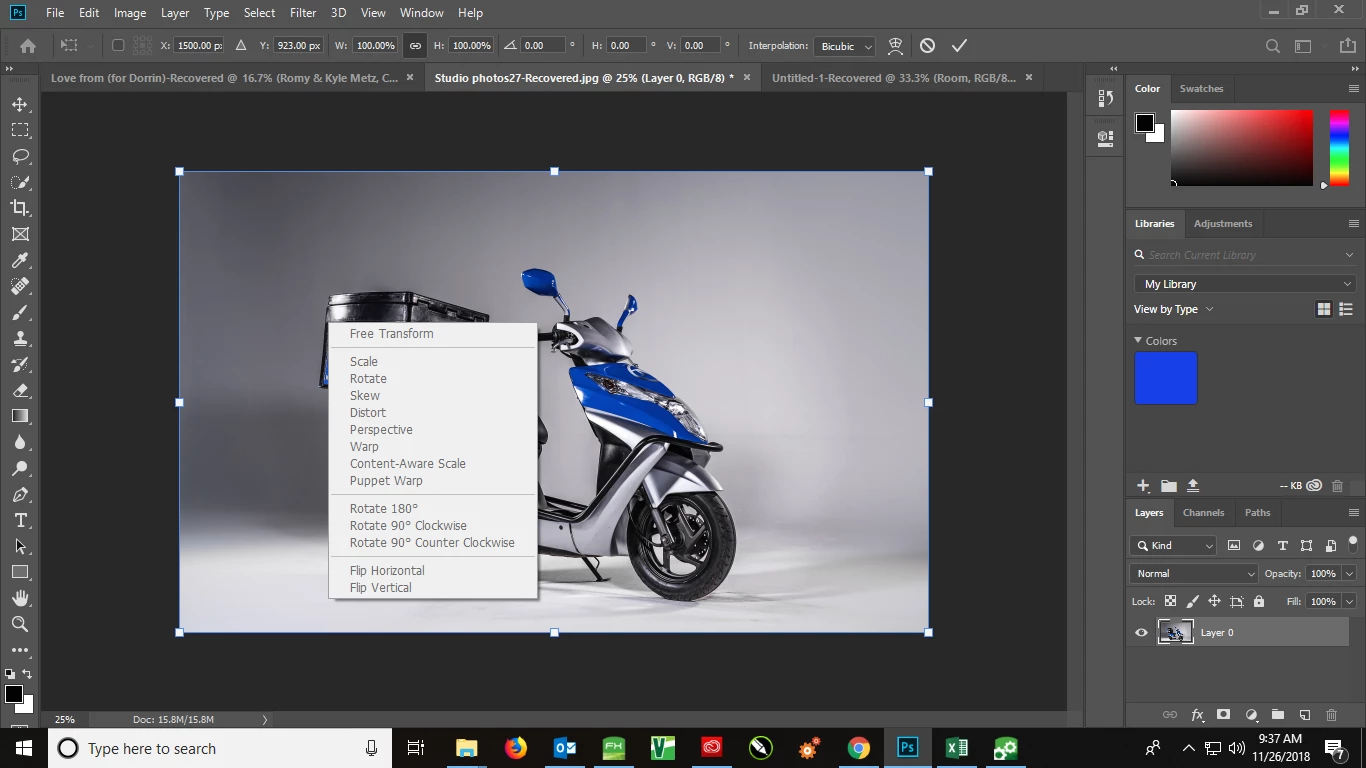 Transform function grayed out in PS CC