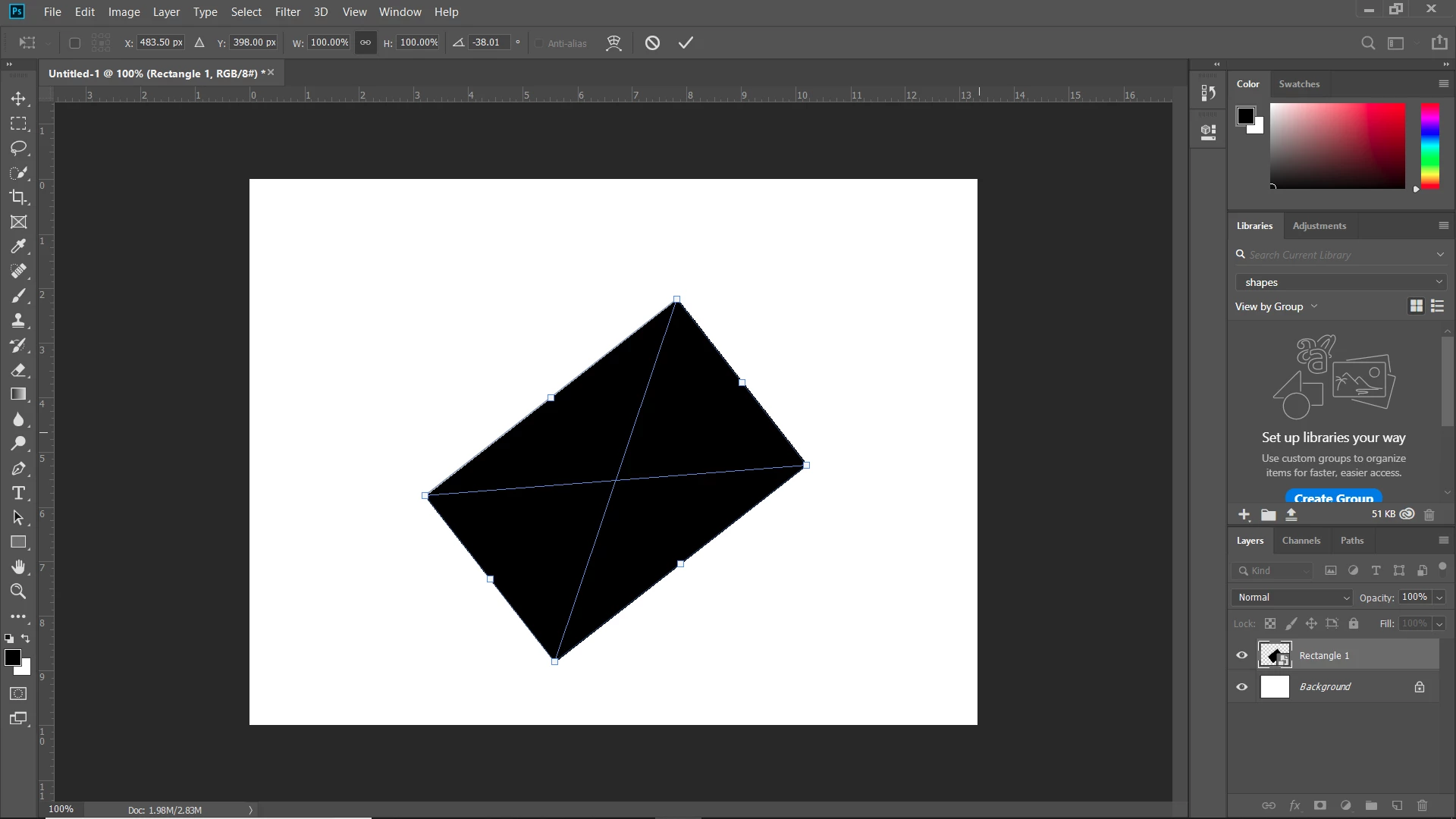 Below is the first image where I can transform the rectangle the way I want to and the second image is what happens after I hit enter. I really need to be able to transform the rectangle again in the way shown in the first picture, WITHOUT THE BOUNDING BOX.