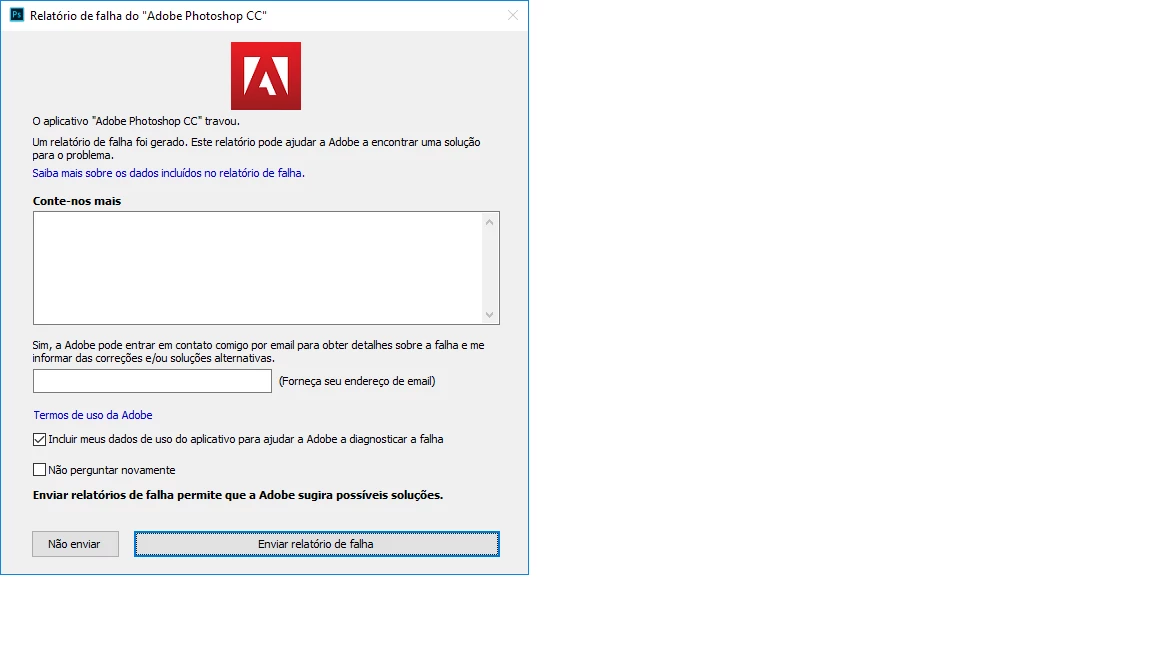 Toda vez em que vou abrir um arquivo.jpg aparece esta mensagem e o Photoshop trava. Já enviei vários relatórios e nada é resolvido. Tenho que abrir cada imagem que irei trabalhar no paint para salvar em png e utilizar no Photoshop. Isso me faz perder muito tempo.