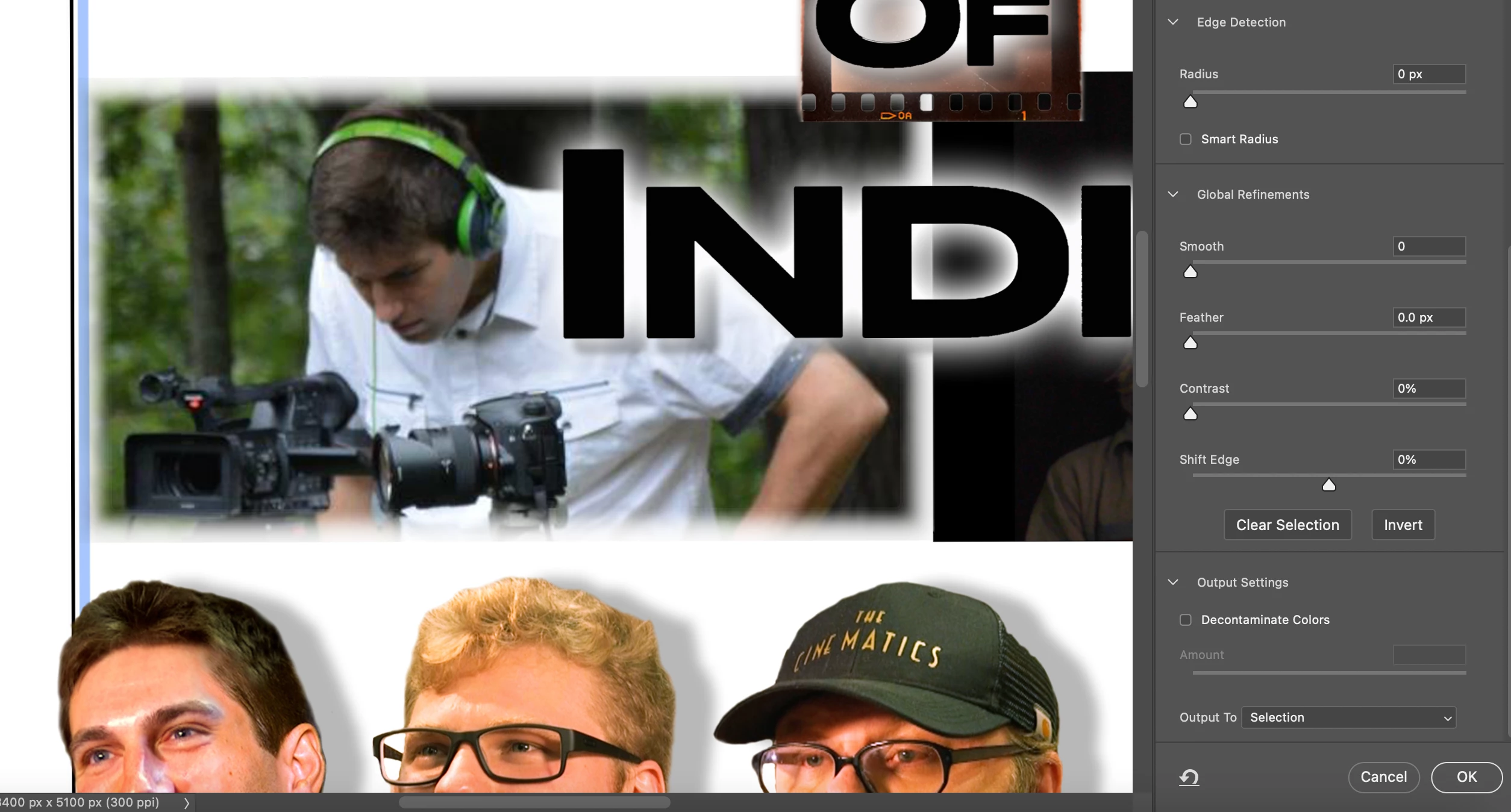 I am trying to feather the edges of this image. So when I select it with the ‘quick selection’ tool and go to ‘select and mask’ I am able to feather the edges. However once I hit ‘ok’ the tab goes away and the feathering changes are undone. It just turns into the black marching ants