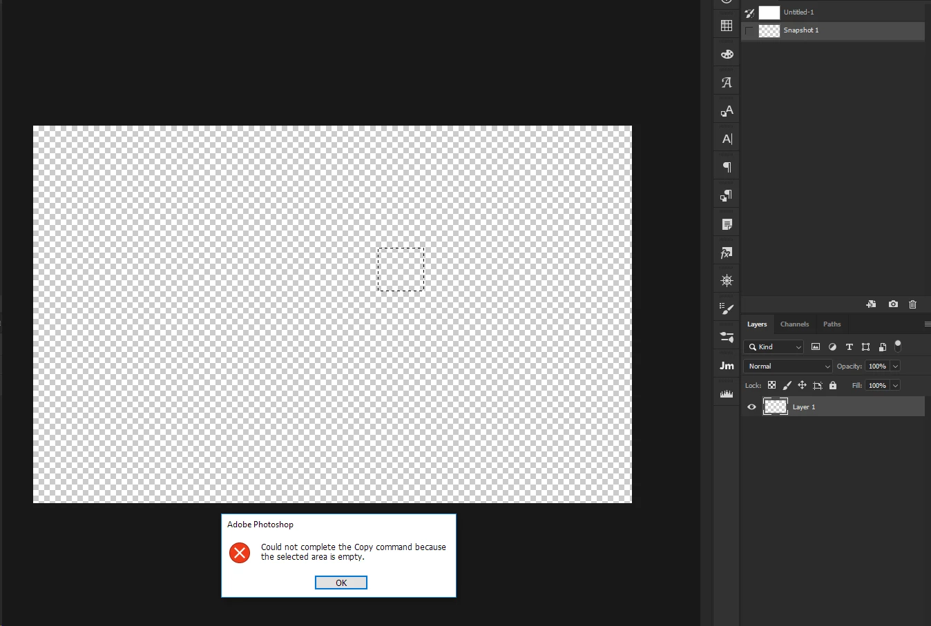 I have a document with an empty layer and I made a selection. When I click Ctrl+C to copy i get this "Could not complete the Copy command because the selected area is empty." any idea on how to throw a try catch or if in a script? (if I can't copy I want an alert "can't copy")