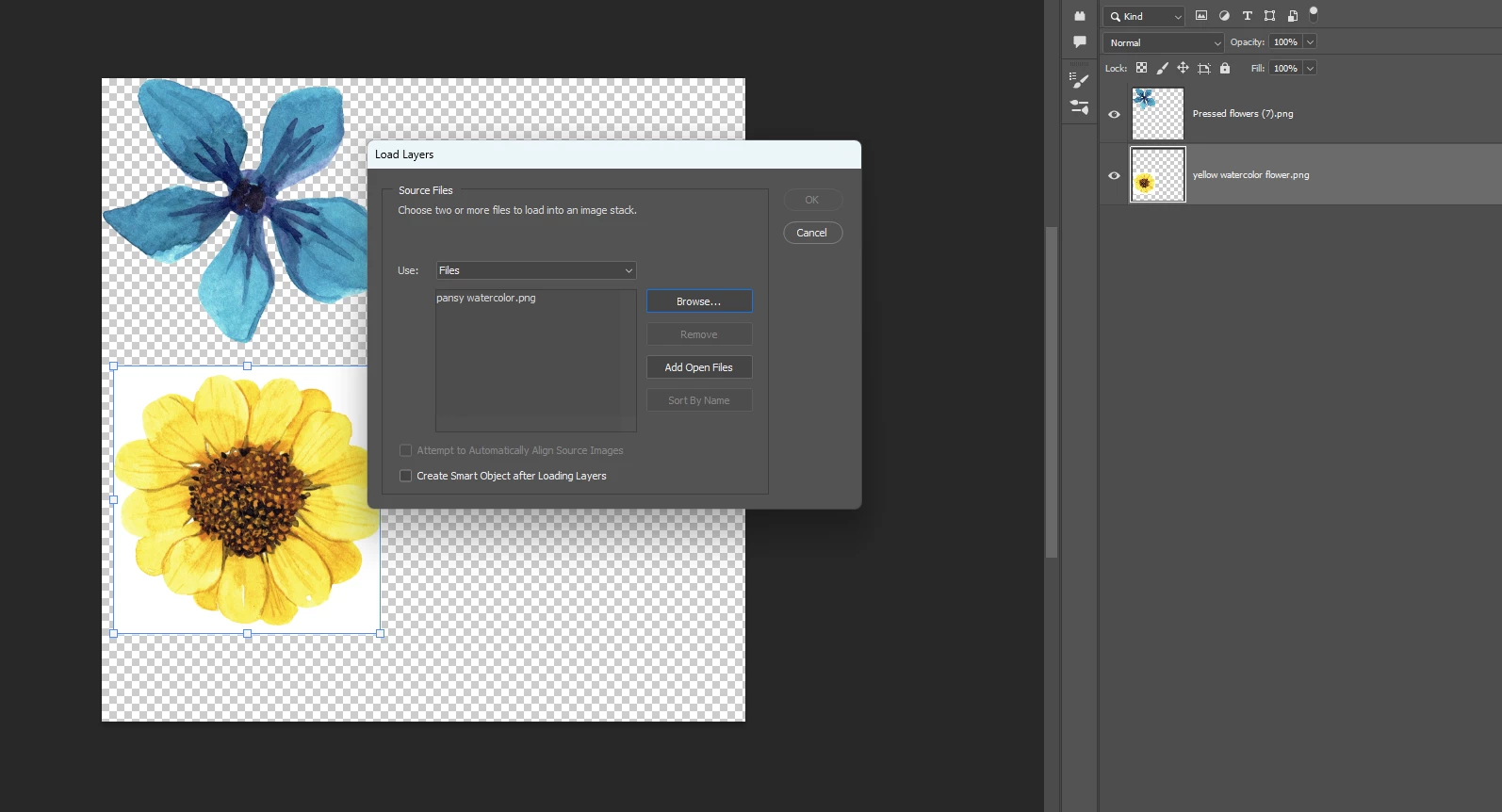 Trying to open 3 images into photoshop,as layers