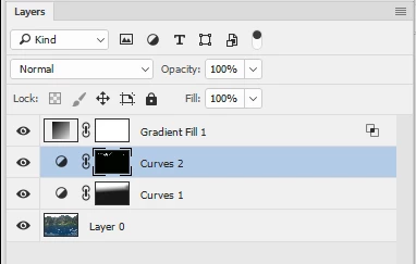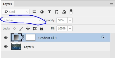 Add a Gradient Fill layer (Layer > New Fill Layer > Gradient) and set the Blending mode to "Darken"