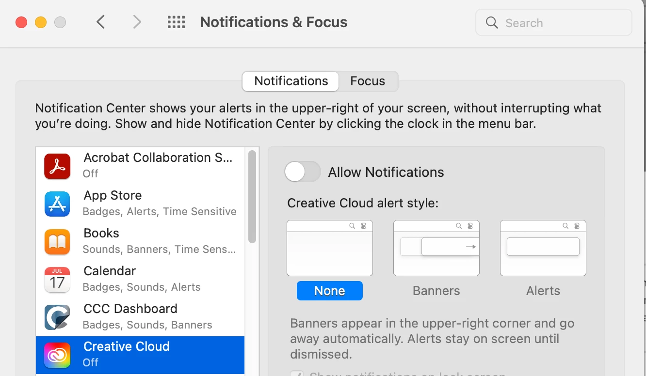 Before you go ahead, System Settings > Notifications looks like this (Monterey OS):