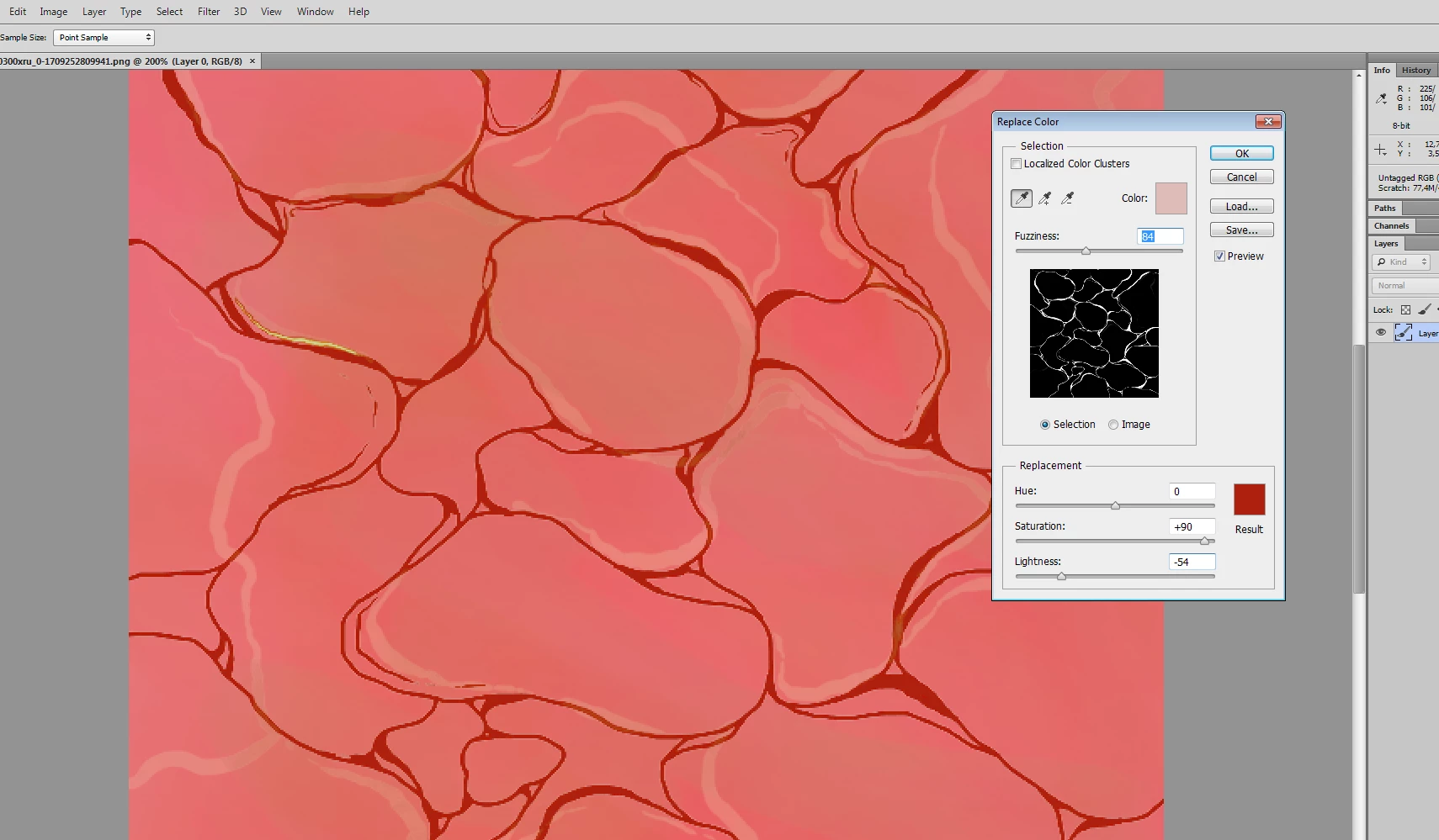 Hey guys, I drew this thing here. You see the brightest white lines. They are on one layer, I copied and pasted it. I need to make them dark red. I tried adjustment layers but nothing seems to affect the whites... Can someone please help me.