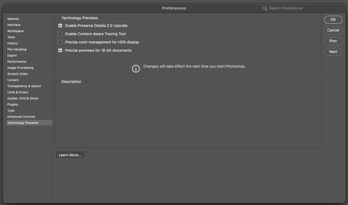 It does not appear in the Window menu, or in preferences. I've read that it can be enabled via a checkbox in Settings > Technology Preview. That checkbox is not present in either of the versions of Photoshop I'm using.