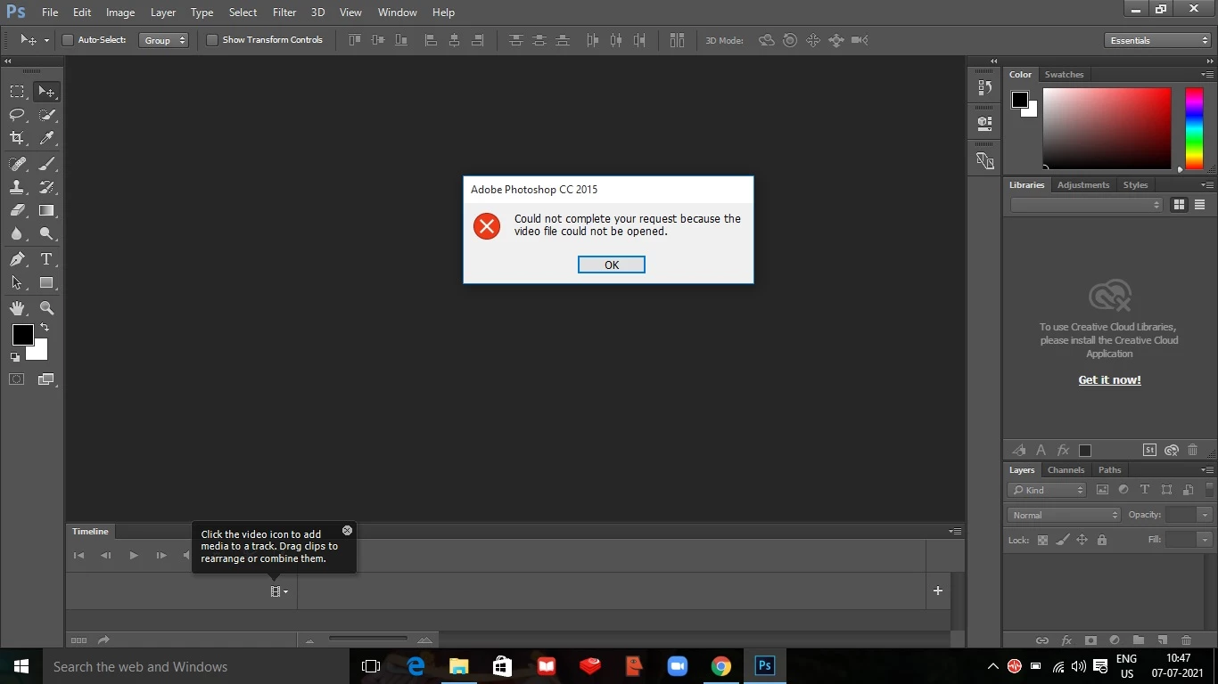 When I want to Open Green Screen Video in My Photoshop Portable CC 2015 version.......Its showing "VIDEO CANNOT BE OPEN" which I have attached in First Image. But when I Open other video......it is opening which I have attached in Second Image. So, please solve my Issue As Soon As Possible.