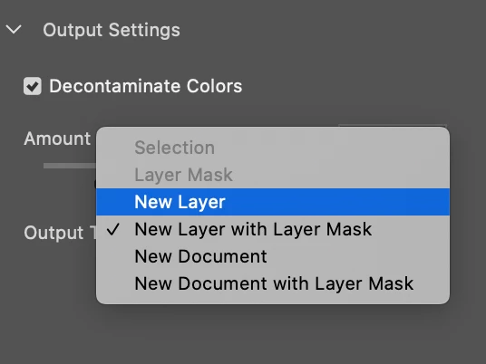 When I refine my mask, I want to output to a Selection.  But the drop down menu has "Selection" and "Layer Mask" options greyed out.  Why is that?  Is it because it's a smart object layer?