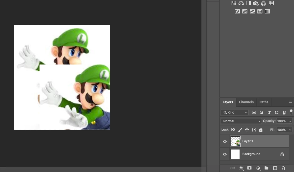 What you see in this picture is that image layer 1 has been moved and dragged down to the right, while the duplicate Luigi is where the image was originally pasted and I guess is part of the background layer.