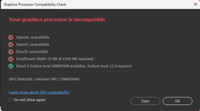 I just updated Photoshop and now it cannot detect my GPU. I tried going back to the old version of Photoshop and now I'm facing the same issue.