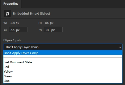 Each of these Smart Objects has it's own LayerComps with names similar to the layer name: