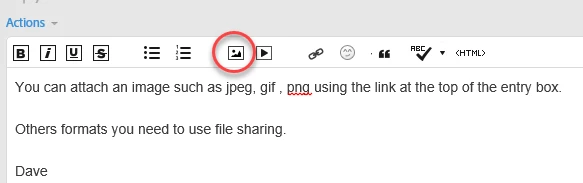 Not sure where to ask this question. Is it possible to attach a file to a discussion on the Adobe Forums? I don't see a 'Browse' button.