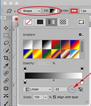 I would like to use the Gradient tool to customize the direction and length of a gradient inside a custom shape.