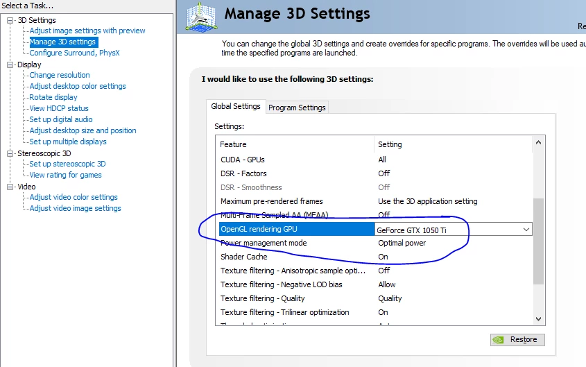 OpenGL Allow Advanced Mode: False.
