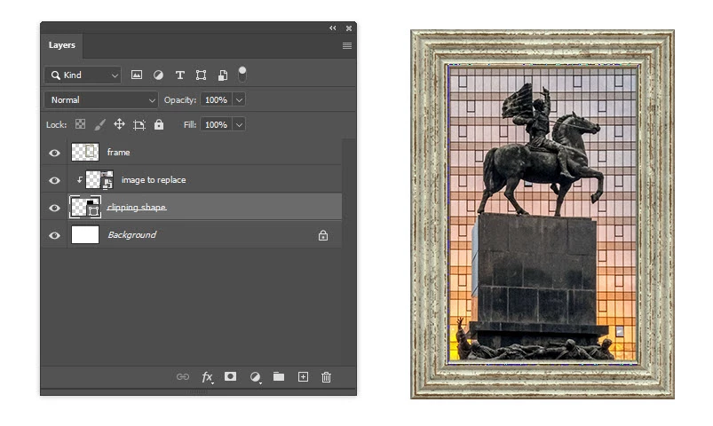 Image placed inside Smrt Object layer will be visible only inside bounds of layer below to which SO is clipped. Peoplw can scale SO layer while watching on screen how change affects their scaling and repositions instantly.