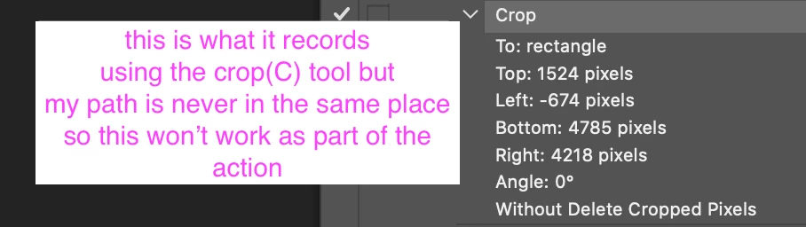 The action only records the specific area I'm cropping on whatever image I'm using to make the action.