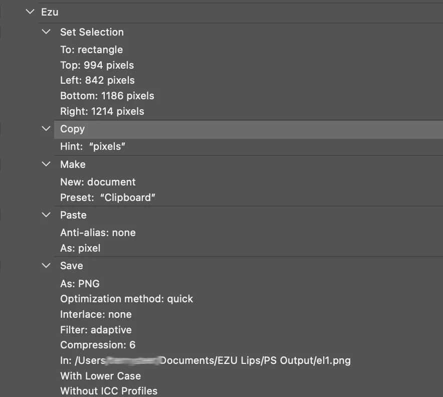 I'm trying to create an action to cut a selection out of a number of files, then paste the selection into a new file and name it with a unique name and save it as a png file into a new directoty.