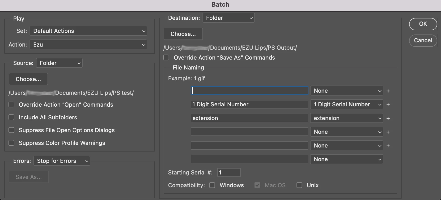 I'm getting the original file renamed as per the batch naming conventions i've selected, and the new files created aren't being saved.