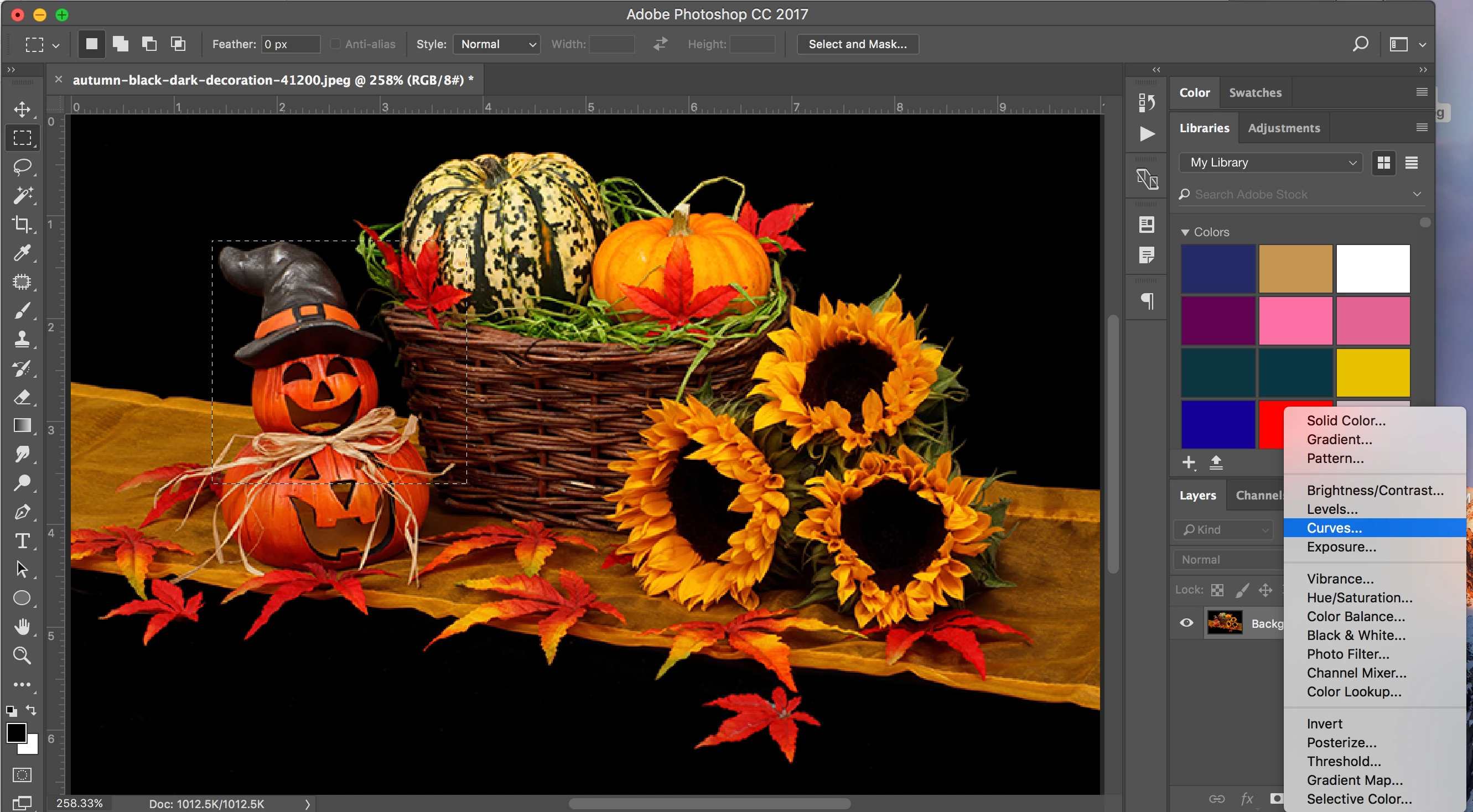 1. How can I make a selection to an image using a selection tool and use a Curve Adjustment Layer to manipulate only the selected area? When I try this it does not seem to apply the change to only the selection.