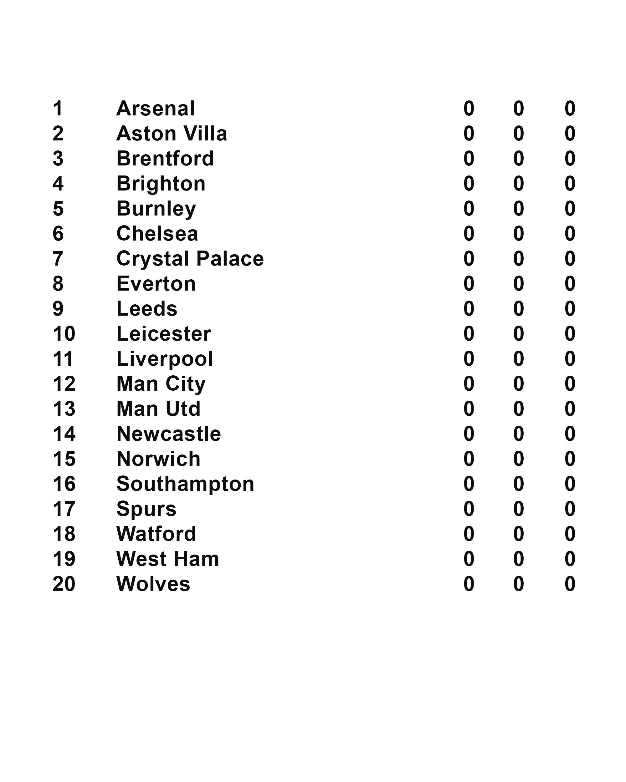 Variable data set (Football Table / Standings)