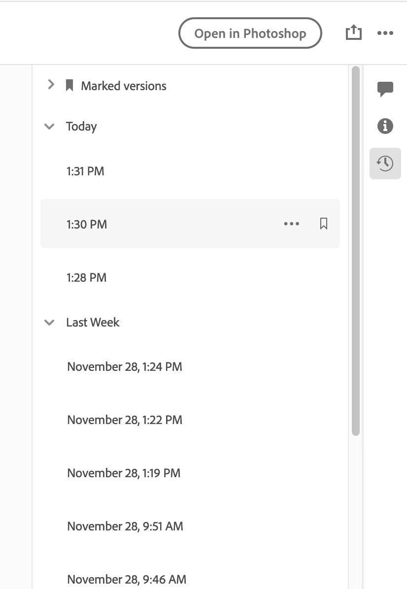 Ever since the Photoshop release that was supposed to include version history, I have never been able to get it to show anything. I save files to "Cloud Documents"