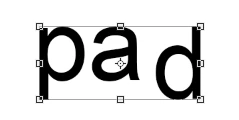7. Click "Align bottom edges" again. The "p" moves down one pixel.