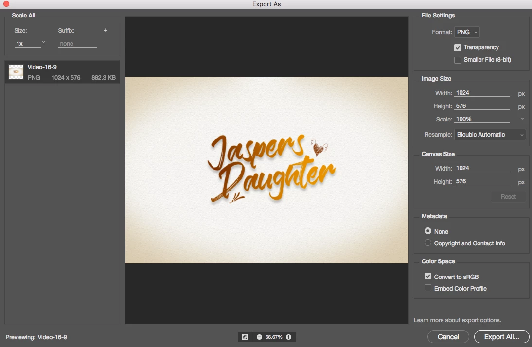 My original image is 1024x576 to accommodate importing into 16:9 movie but when I go to export the photoshop file I get this strange vertical stretching of the image.