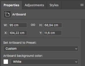 View artboard size in pixels