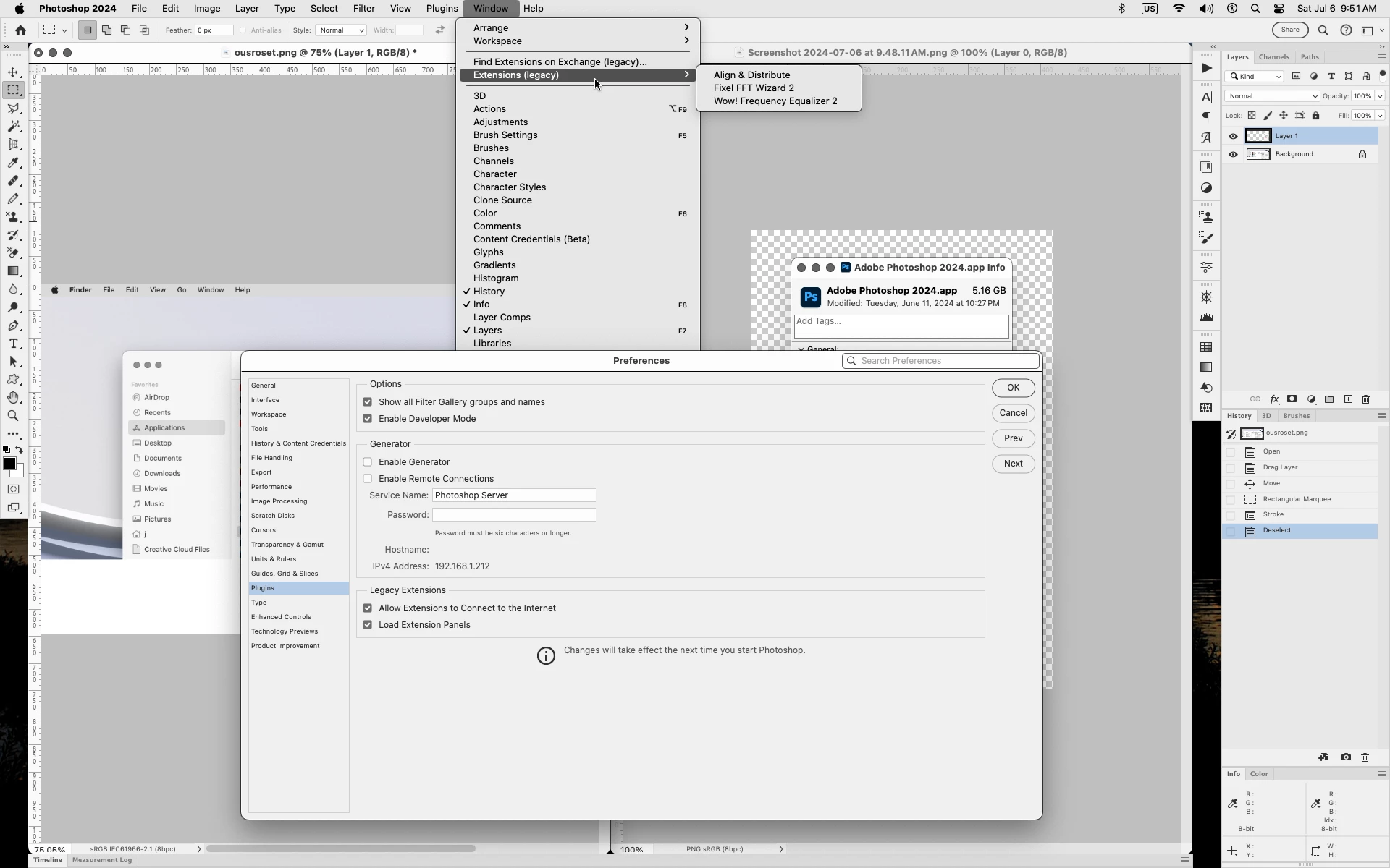 Yes you need to run Photoshop under Rosetta to enable Legacy Extensions.